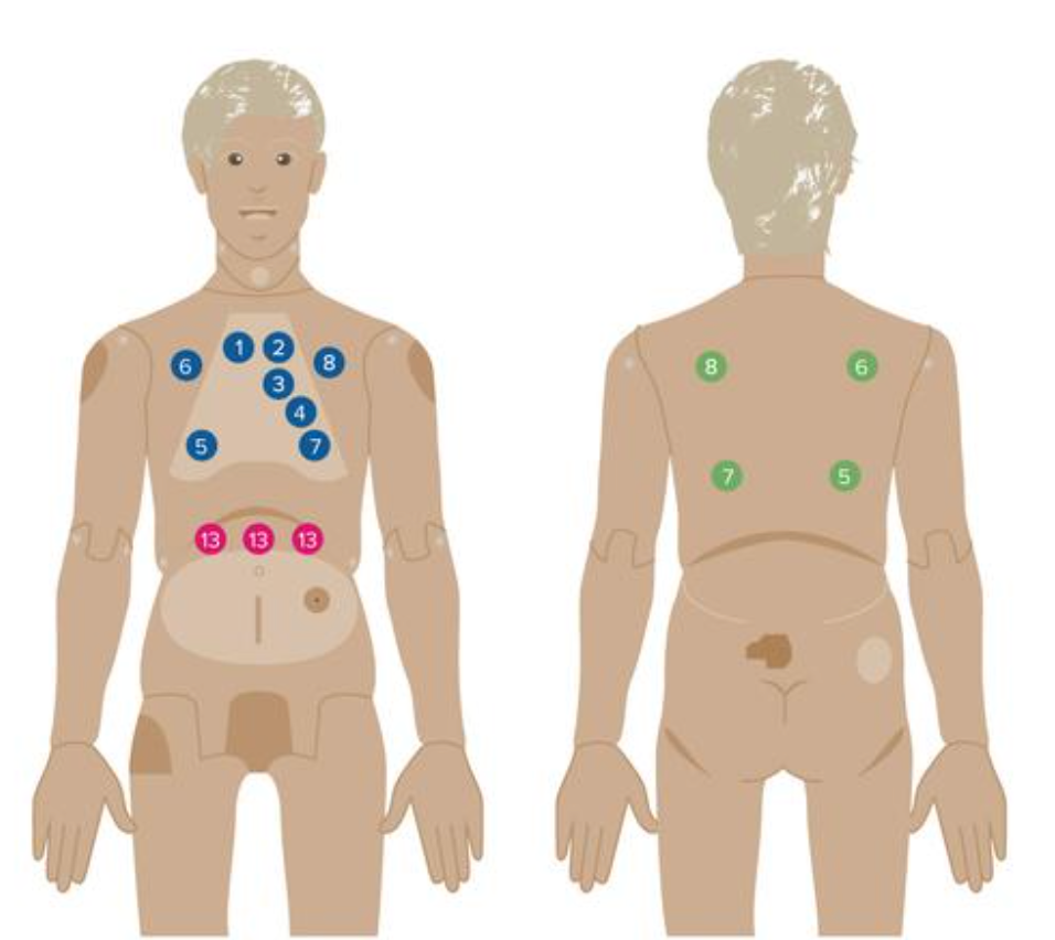 | Auskultationspunkte | 15 (11 anterior, 4 posterior) |